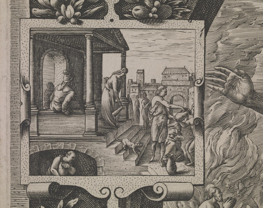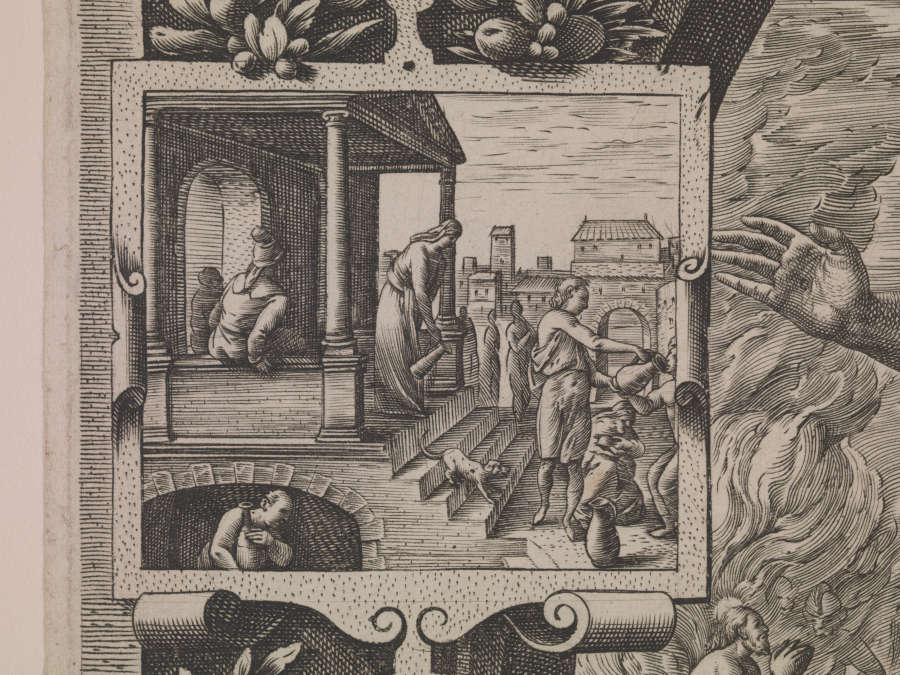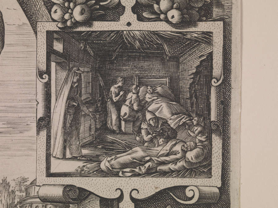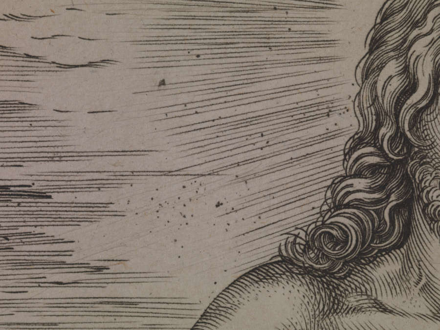 Verso:in pencil, LL:50.17.A4/Proute; in LR:Dutuit 42º -1e(e superscribed) etat sur 3/édition Hier.Cock (aux 4 vents); in brown pencil, UL quadrant:V.17; in pencil, UL quadrant:/1-2; in UR:3-