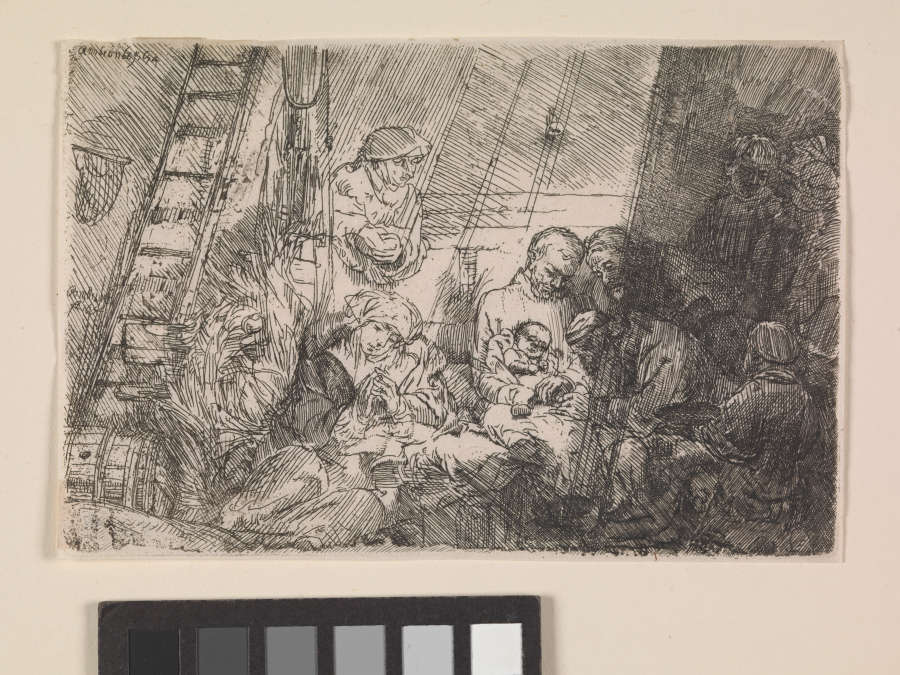 In Plate--Signed and dated, UL:Rembrandt (d reversed) f 1654; signed and dated, center of left edge:Rembrandt/f 1654