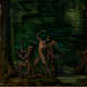 This painting presents a group of young men moving gracefully in a forest setting that also resembles a theatrical set. Davies’s treatment of the figures’ movement reflects his avid admiration of both ancient Greek art and modern dance. The title Clothed in Dominion suggests that the unclothed men are metaphorically dressed in the power (or dominion) of their own muscular bodies or in their power over the natural world, of which they have become a part.