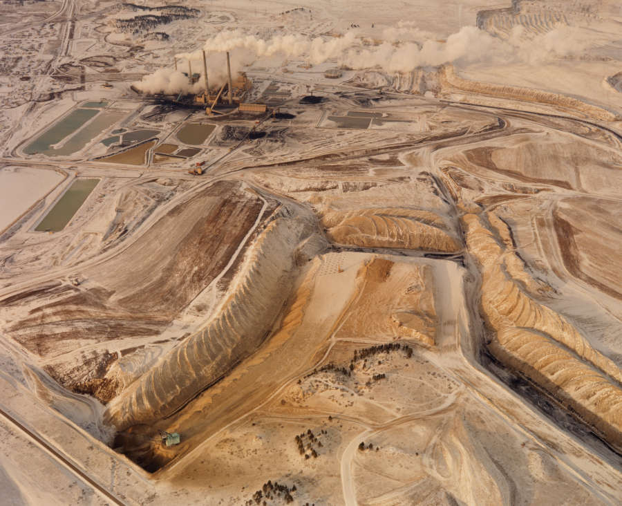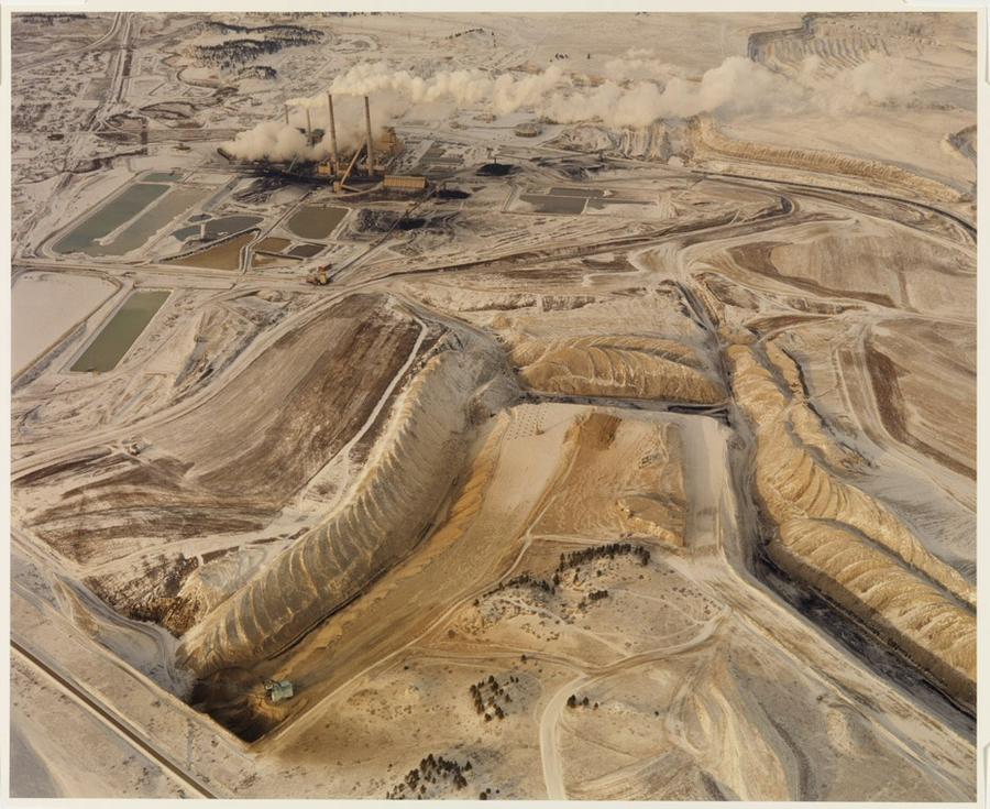 Signed in black marker LL: Colstrip Montana:Coal strip mine, power plant and waste ponds.January 1984.