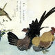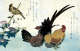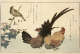 Cockerel, hen and Japanese meadow buntin (Niwatori to hojiro)
