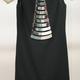 Wool, mirrored chrome metal; crepe-twist yarn, chain-link, appliqué, plain weave