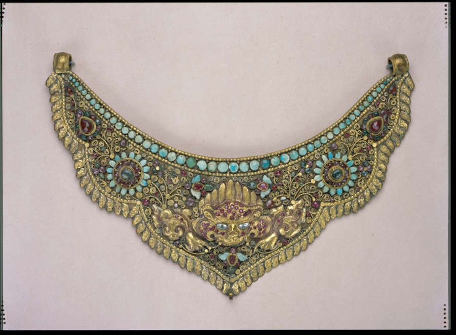 gilding, brass (alloy), turquoise, mother of pearl Geography
