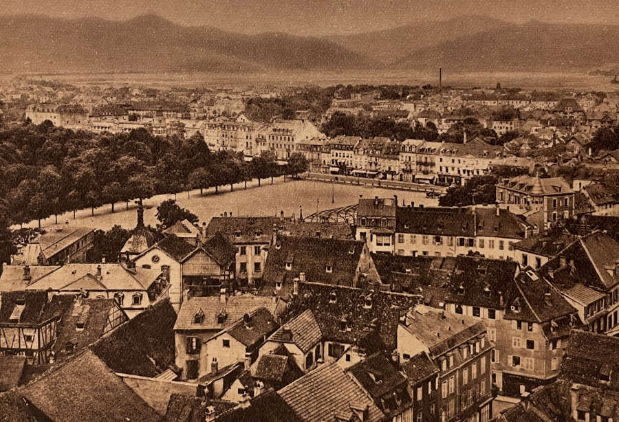 Printed on verso, upper left: 313 Colmar/ Vue générale; upper center: CARTE POSTALE; upper right: [rectangle for placement of postage stamp]. Printed on verso, center, oriented vertically: Les Editions Braun & Cie, Mulhouse (H-Rhein). Printed on verso, right side: [four horizontal lines for addressing postcard]