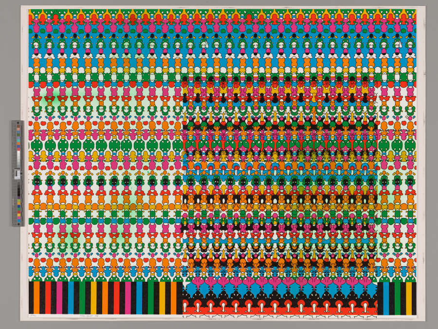 Eight-color screenprint with sprayed enamel on Coventry Rag 320 gsm