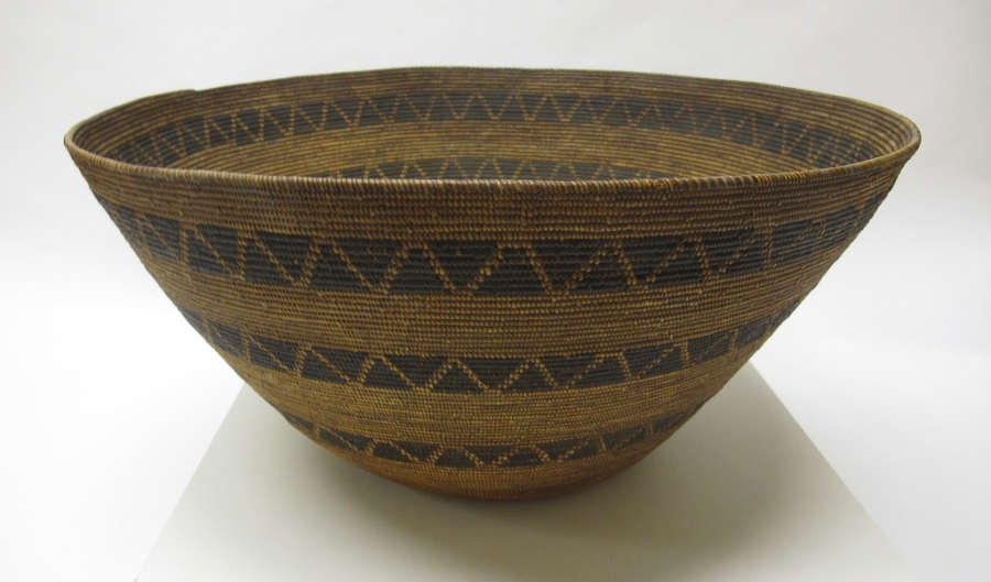 Deer grass (foundation), sedge root, joshua tree root (rim), dyed bracken fern root; bundle coiled