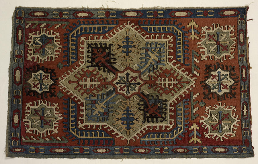Plain weave, cotton; embroidery, silk, running stitch (pattern darning)
