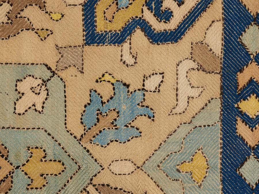Cotton, plain weave; silk, running stitch (pattern darning)
