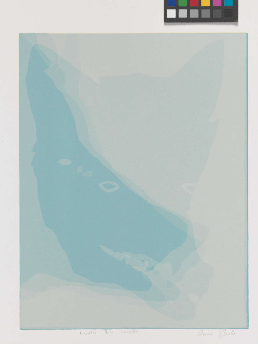 In pencil, below platemark, center: "Coyotes Blue Laughter Duane Slick"