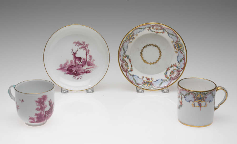 Marks: Mark of crossed swords in gray-blue on base of each. No impressed mark.