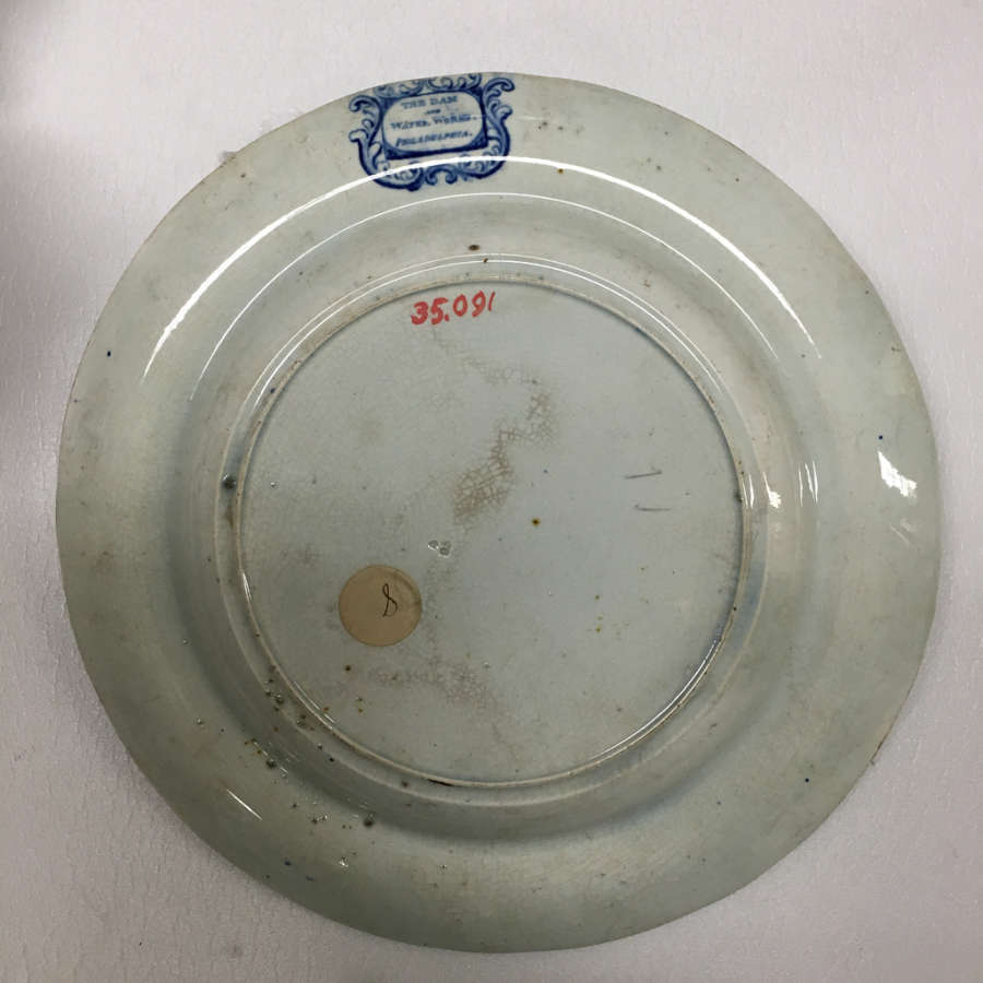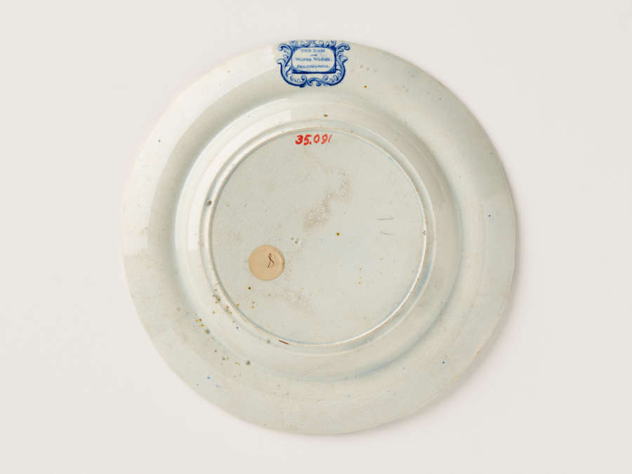 Marks: On back, title within rectangle surrounded by leaf scrolls.0 and 25 impressed on back.