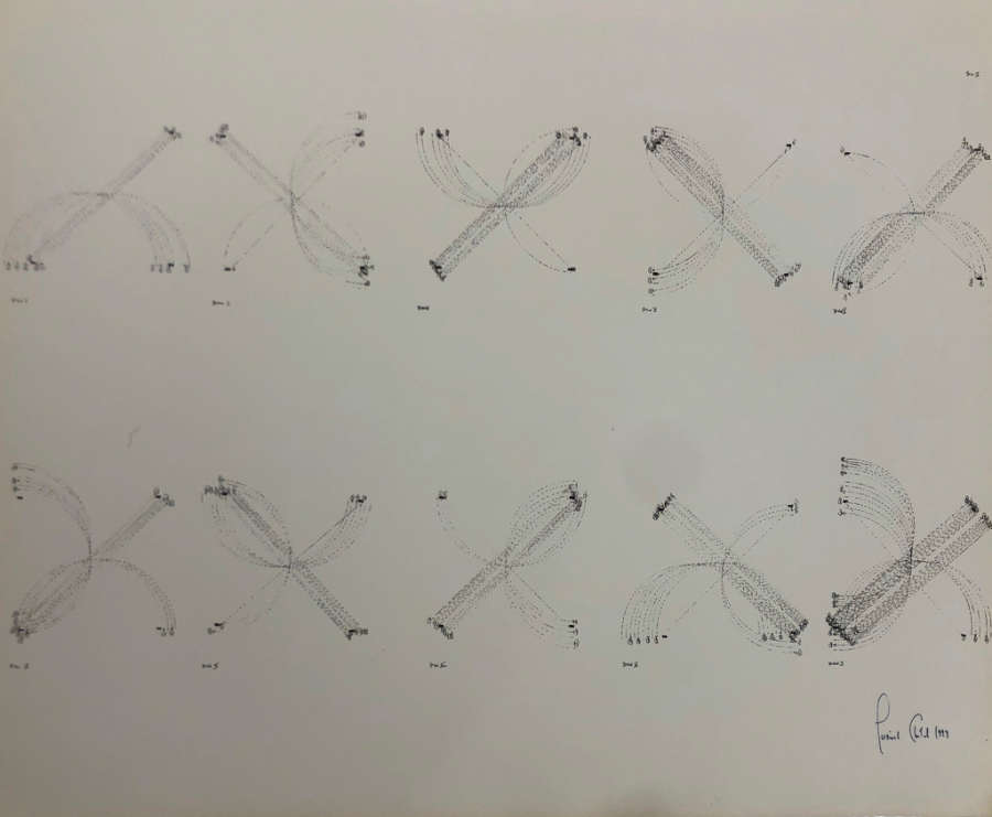 Signed and inscribed in blue ink on recto LR: “Lucinda Childs 1979”