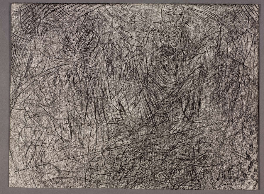 On the verso of both sheets: Artist's address stamped in green ink, and signed and dated in graphite: Joseph '84. 1 - on verso, in orange marker: "Left, Death of a Culture" 2 - yellow paper. On verso, in graphite: "Right, Death of a Culture"