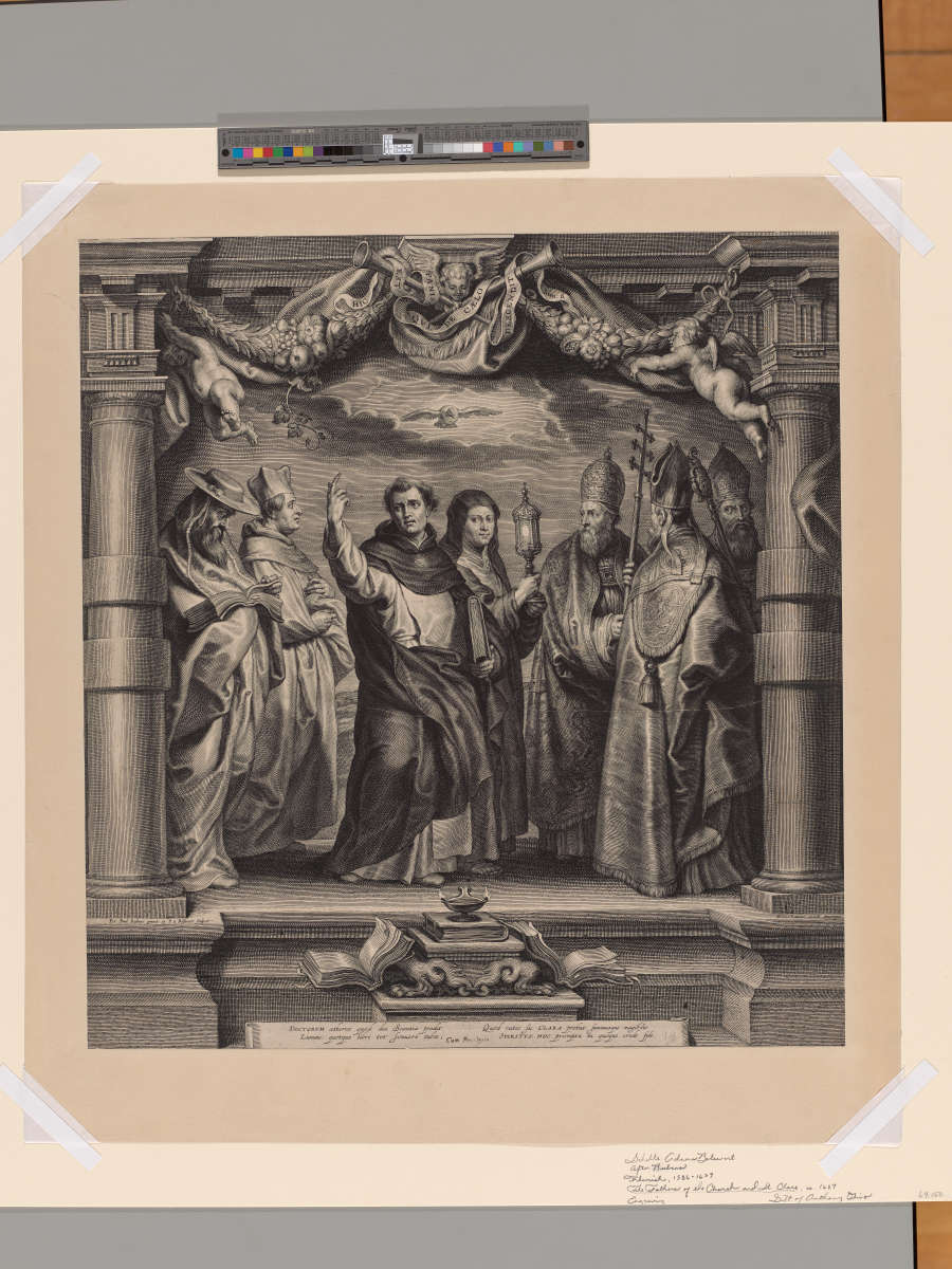 Original--Verso:in pencil, LC:25 30 5 Verso of mount:in pencil, LL:10-17-69 A-1/OLIVO; in UL:15ººRecto:in pencil, LR:19In Plate--In LL:Pet. Paul. Rubens pinxit et S. à Bolswert sculpsit.; in LR:Nicolaus Lauvers excudit Antuerpiae.; 4-line Latin inscription, LC:DOCTORVM aethereo... (see print for full inscription); in UC:HIC EST PANIS QVI DE CAELO DESCENDIT Ioan.6.