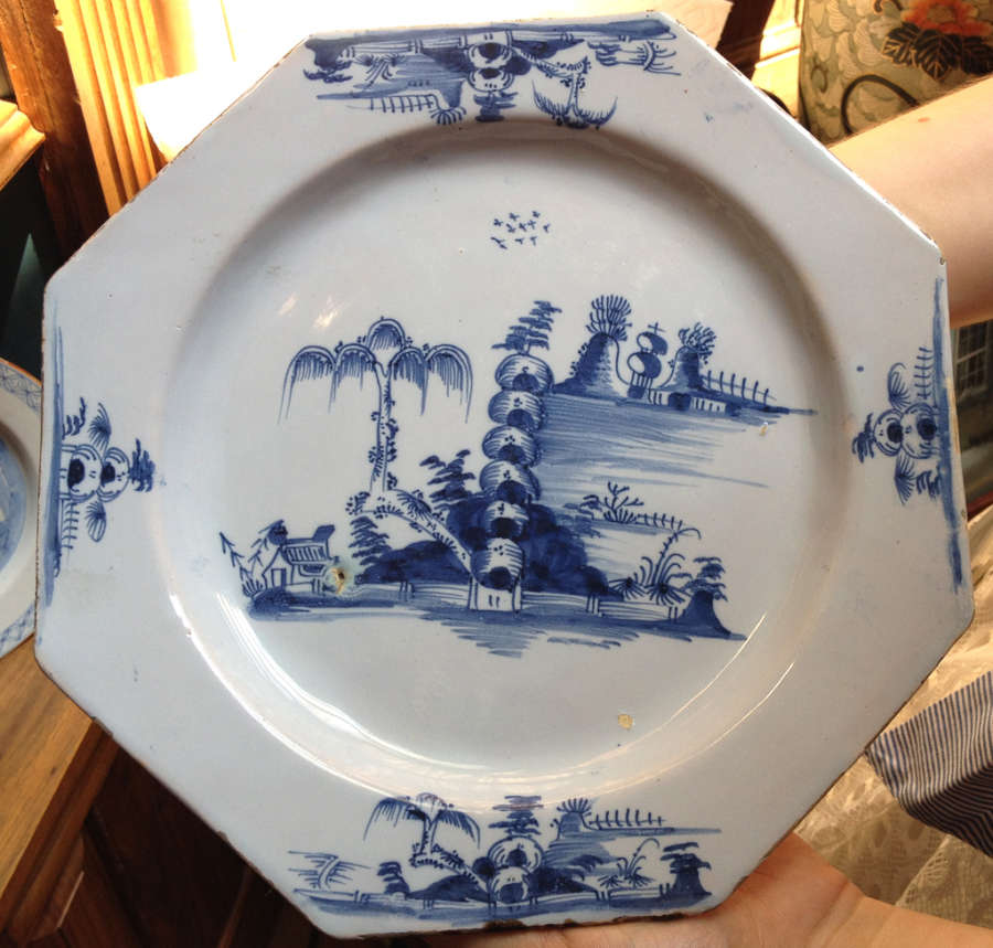 [Written in black marker or paint on reverse of plate] "Monahon." [White square sticker] "Eleanor Monahon/Collection 12/19/91/Bristol/Flower style." [White round label] "William & Gretchen Viall Collection."