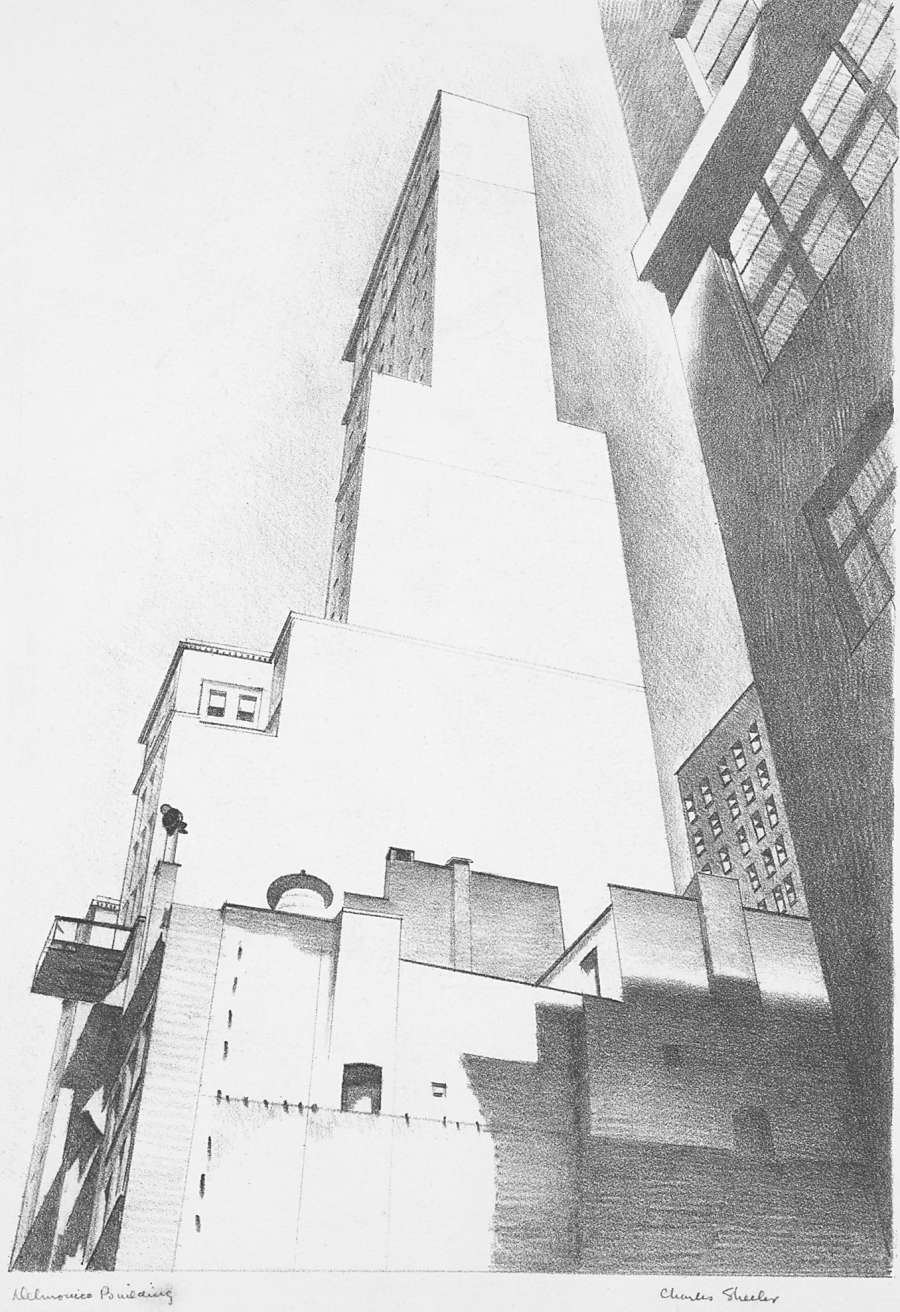 Original--Recto:Inscribed in pencil under image on left:Delmonico Building; signed on right:Charles SheelerVerso:Inscribed in pencil in LL:50.074