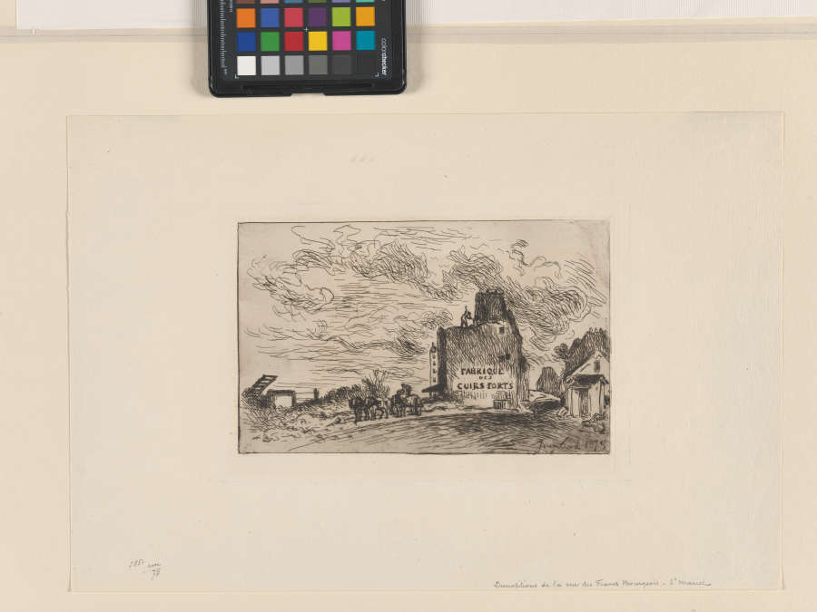 Original--Recto:in pencil, LL:7851 rm/75 ; in LR:Demolitions de la rue des Francs-Bourgeois-St(t superscribed) MarcelVerso:in pencil, LL:11.8.50 A-3/ WallachDelteil 18 IIIn Plate--Signed and dated, LR:Jongkind 1873
