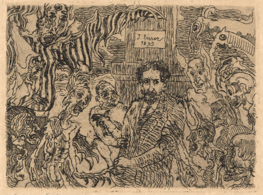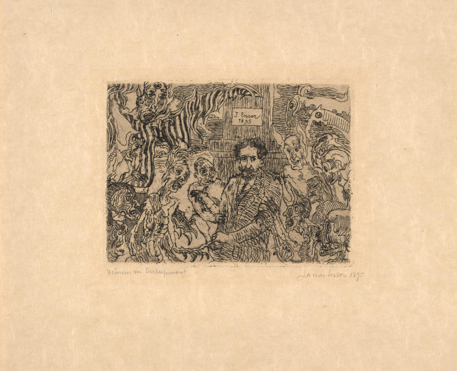 Original--Recto:dated and signed in pencil in LR:Ensor1895; titled in LL:dèmons Turlupinant; in UR:D.D. 91Verso:in pencilin UL:178; in LL:Demons me turlipinant; in LL corner:8.15.52A-3/Giraux; in LR:Demon me turlipinant In Plate--signed in LR:J. Ensor/1895