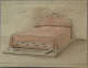 On verso in pencil: "MRS. T. R. FINUCANE", and on recto in pencil script: "mirror 4' with legs see how high mantel (?) - Look up bed / p(ushed?) (?) / try A(shley Rent?) / about 52 high / Se(h?)affer / morning glory in guest / work up schema / curtains bed / chaise chair her / room / trimming / 69" wide - 49" h-".