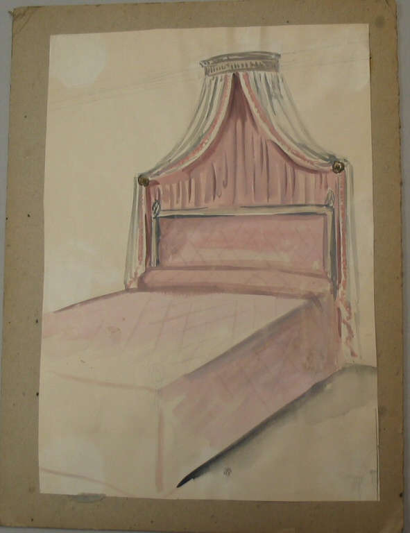 Design for a Bed with Canopy; designs for beds and perspective views of bedrooms, ca. 1920-ca. 1970