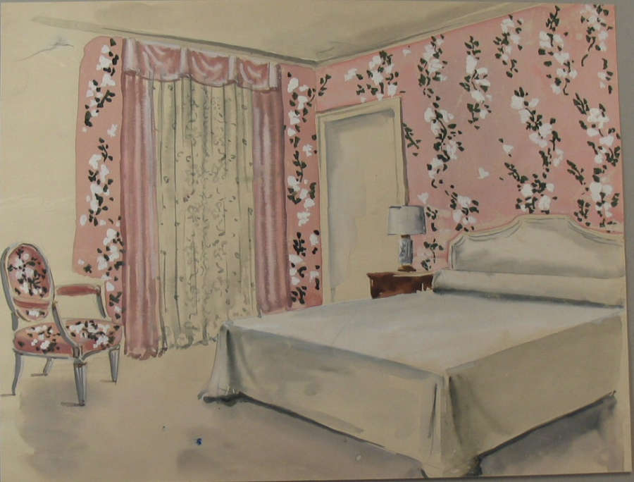 Design for a Bedroom; perspective views of bedrooms, ca. 1920-ca. 1970