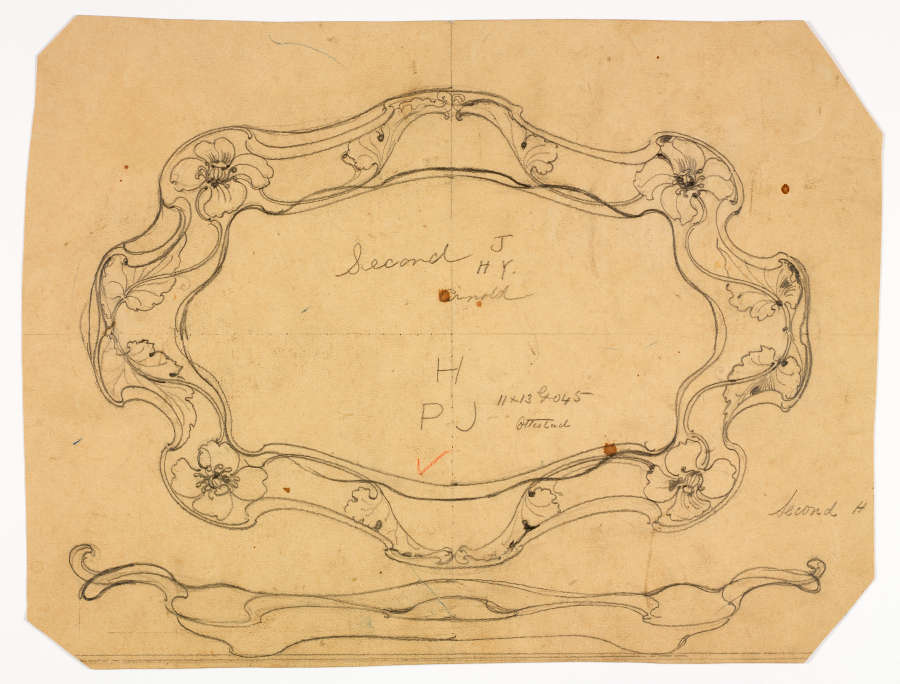 In pencil at center of dish, "Second J/HY. / [Arnold] / H/PJ11x13 G045 / [?]" and in pencil to lower right "Second H".