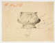 In orange crayon in upper left corner, "#4611B". In ink below center of drawing "#4611B". In pencil alongt right margin are several manufacturing specifications and "This one / ordered / see letter" and "11oz" below drawing.