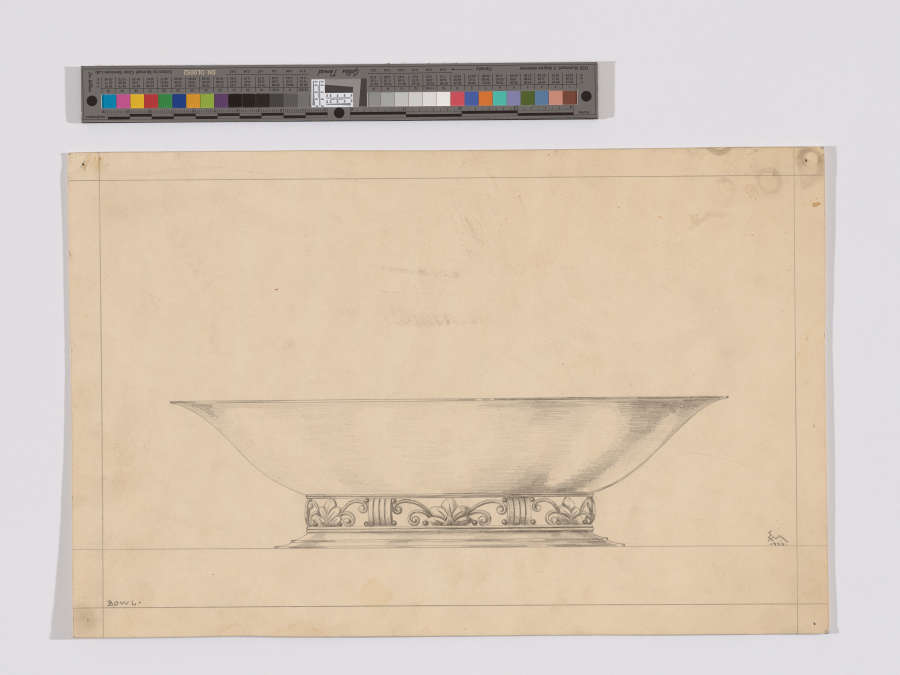 All in pencil: "BOWL" in lower left corner, "EM. / 1929" in lower right corner. On back side of drawing, "MAGNUSSEN" in upper left corner.
