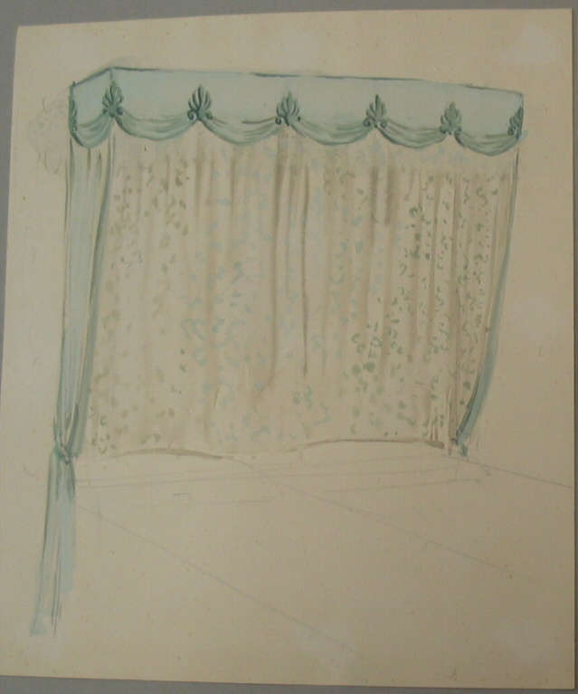 Design for a Canopied Bed; designs for beds and perspective views of bedrooms, ca. 1920-ca. 1970