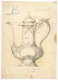 In pencil in upper right corner, "Coffee to hold 2 1/2 Pints". In blue crayon to lower right of drawing "9500/1000". In ink below drawing, "FCX". Various measurements and manufacturing specifications on drawing in pencil.