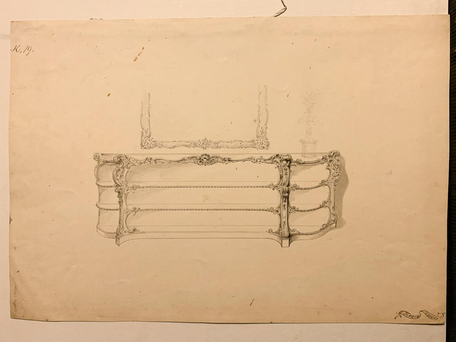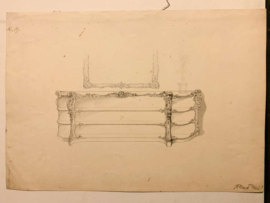 Signed LR:Henry Woolley ; inscribed UL:K19 Inscribed on verso:Dr room furniture