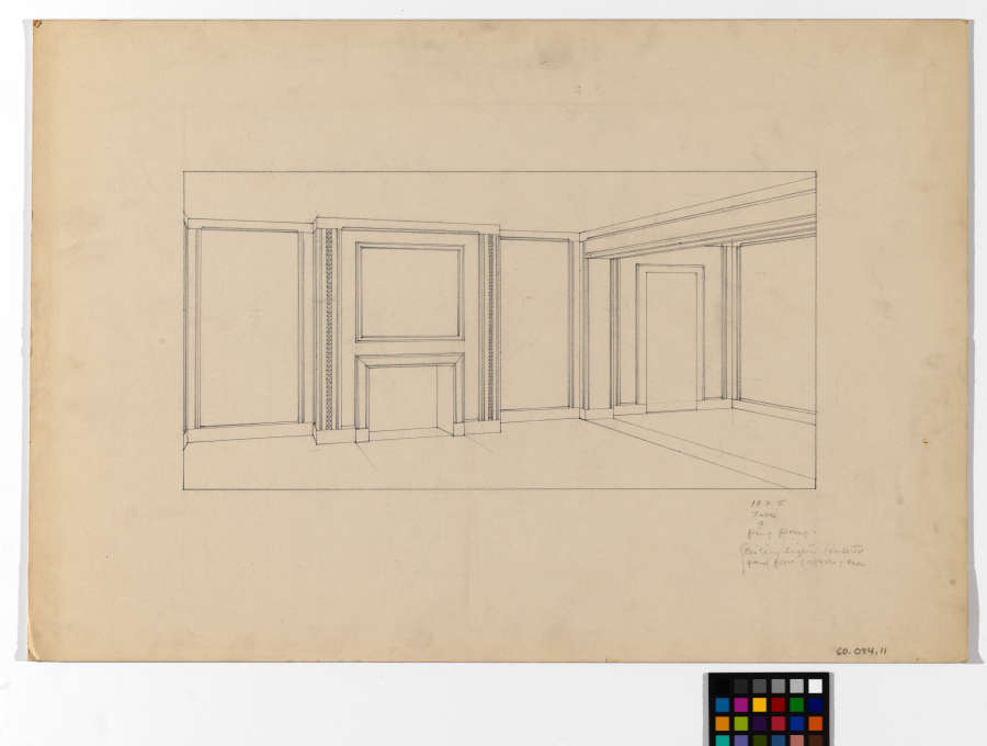 written in pencil below drawing- "10x5 table & ping pong. ceiling lights (?) panel floor reflecting (?)"