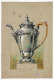 In ink below center of drawing, "H/BC Tea Set + Kettle / H/BD Waiter" above in pencil is "1 Set Kettle / S Waiter". In blue colored crayon in lower right corner, "H/BC". In pencil on various parts of drawing, "4XY.G.040" above spout, "4 G.057 Thick edge" to right of lid, "13 1/2 G040" on body, "4X8 G040" below handle, "2 Gor 8 1/2".