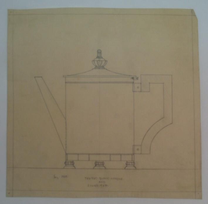 All in pencil: "EM. 1929 / TEAPOT . BLACK . HANDLE / AND / IVORY . TOP." below drawing.