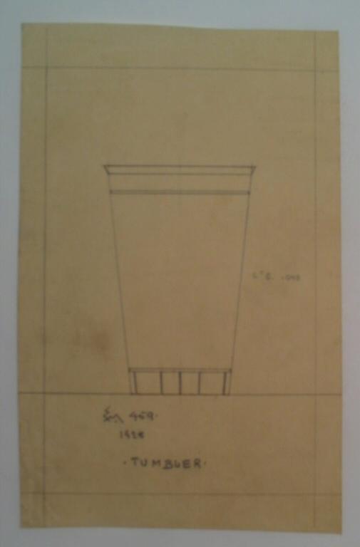 "EM. 459 / 1928 . TUMBLER." below drawing. "6" 6. .040" along right margin to right of cup.