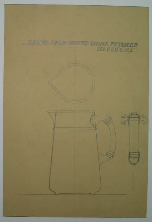 In pencil across top, "DRAWN FROM WHITE CHINA PITCHER / MARCH 8/22"
