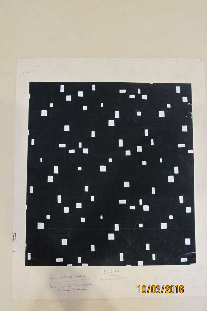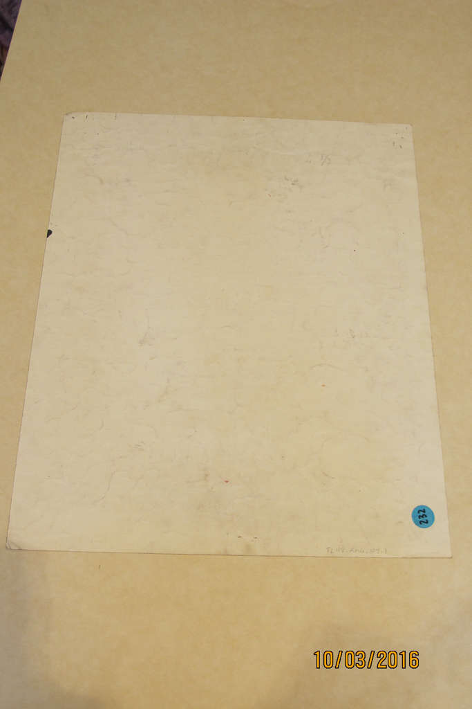 Sheet Recto: BLue ink 54044, production notes, designer stamp Credit / Object Number