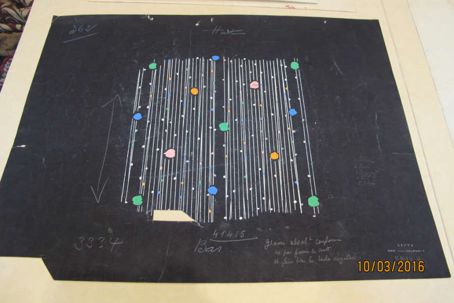 Sheet Recto: pencil 41415, designer stamp, graphite number 3334, chalk pencil 362, production notes Credit / Object Number