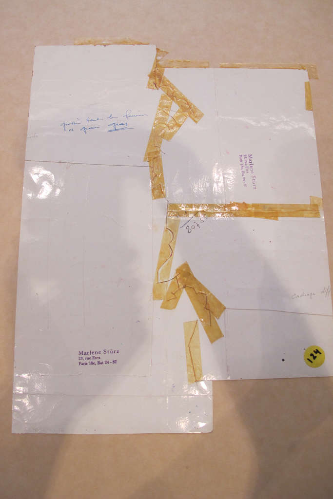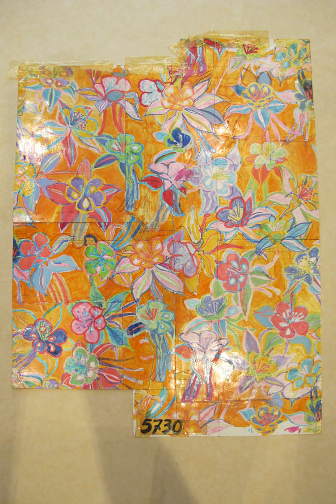 Recto: label: 5730, ; Verso: designer stamp (twice), in ink :80755, yellow sticker: 124, production notes