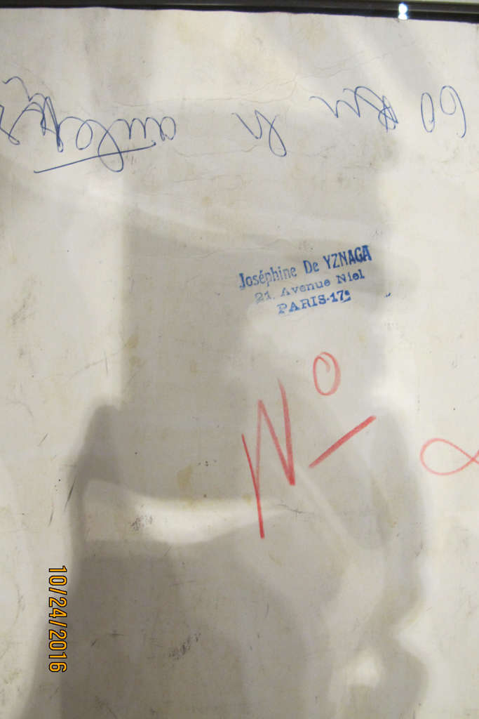 Verso: Production notes, two maker stamps, red sticker "100", red X, 4058-59826, 4058