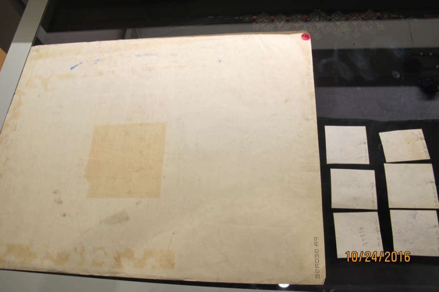 Support Recto: production notes, three artist stamps (one perforated), 41342, 3227, stamped 2824