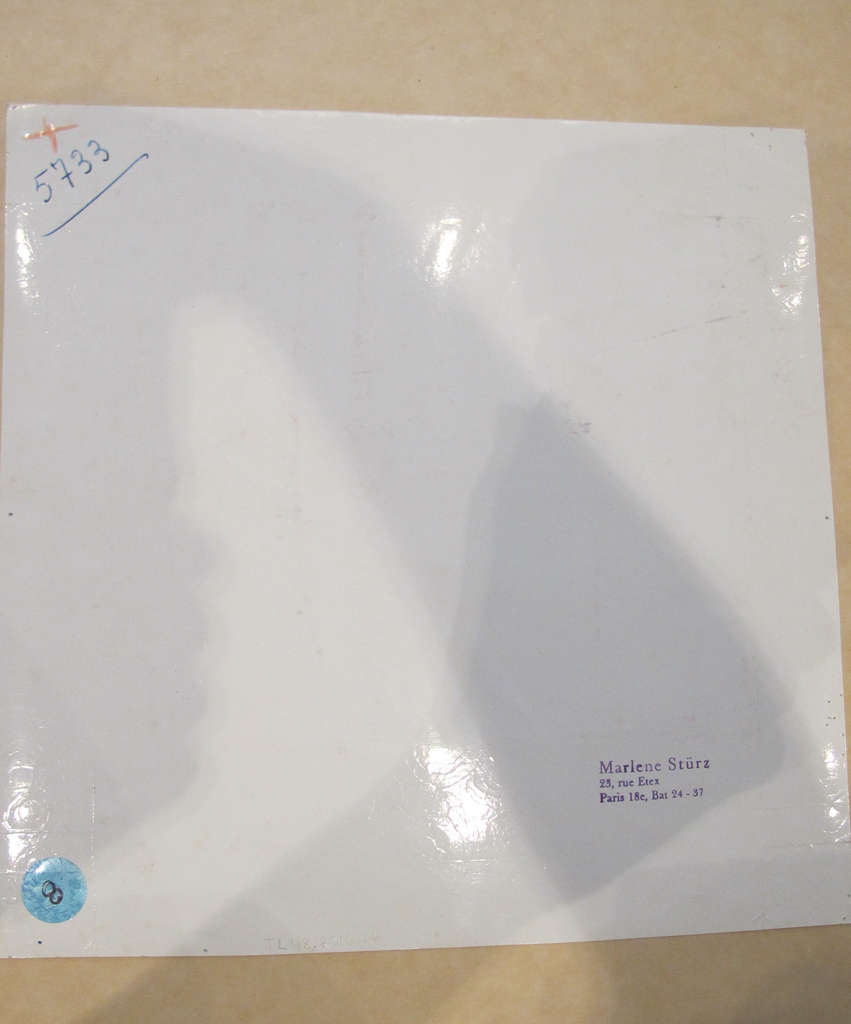 Verso: designer stamp, in ink: 5733, red "X", blue sticker: 8