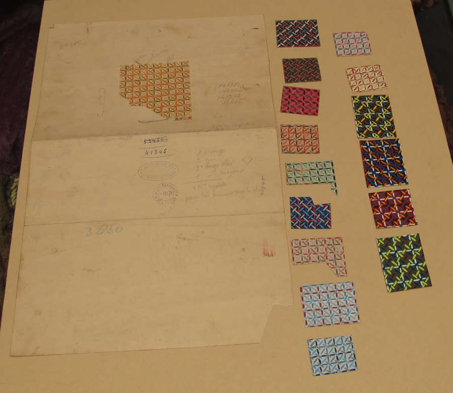 recto: 2 design stamps (Keller 13572), production notes, ink 41345, blue pencil 3230