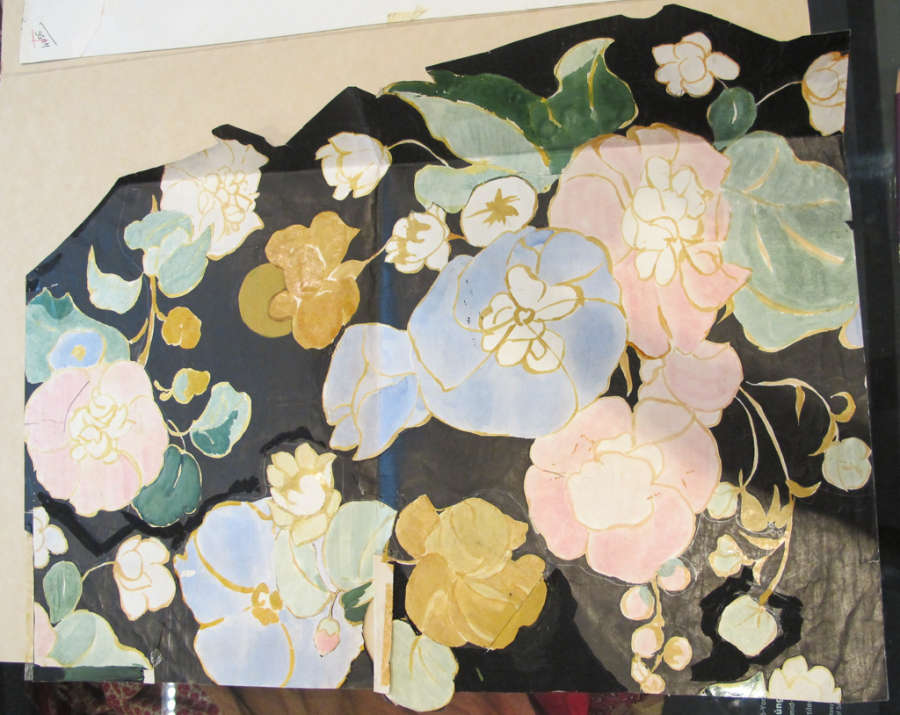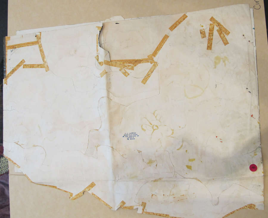 Verso: designer stamp, in ink: 4098, partial red "X", red sticker: 151