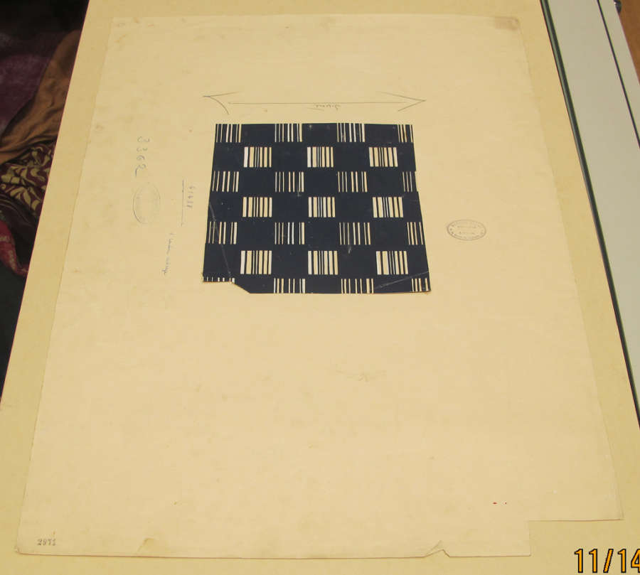 Recto : designer stamps, production notes, ink 41438, blue pencil 3362, stamped 2971