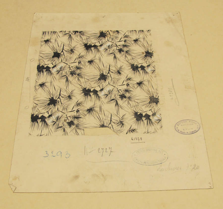 Recto : designer stamps, production notes, ink 41378, blue pencil 3293, pencil 2727