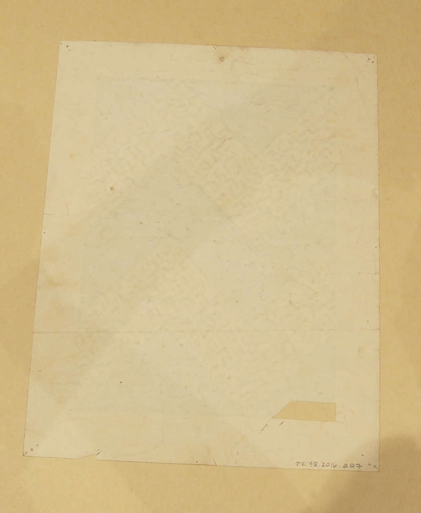 Recto : designer stamps, production notes, ink 41417, blue pencil 3337, pencil 2791