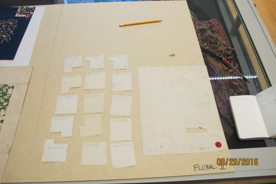 recto: 3 stamps, production notes, (41359); verso: red stick "55", small cut out area in design