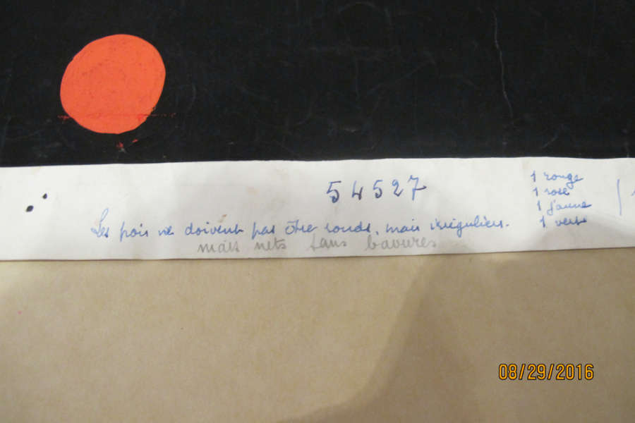Sheet Recto: black ink number: 54527, production notes (see image)