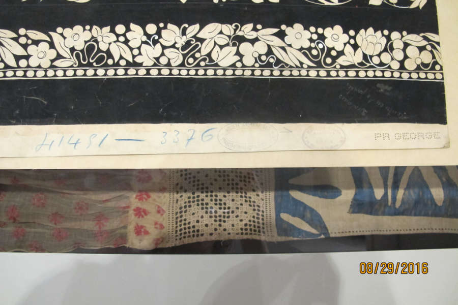 Sheet Recto: three designer stamps, production notes (see image), same numbers as verso Credit / Object Number